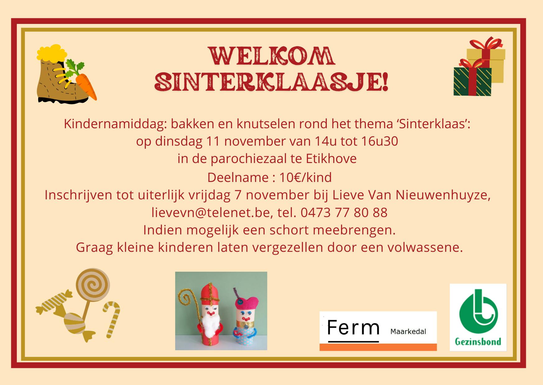 Ferm Maarkedal i.s.m. Gezinsbond - Kindernamiddag info: ann.dieryckx@telenet.beInfoLocationParochiezaal EtikhoveNederholbeekstraat 28 9680 Maarkedal BelgiëDatumDinsdag 11 november om 14:00 - 16:00Leeftijd 6-11